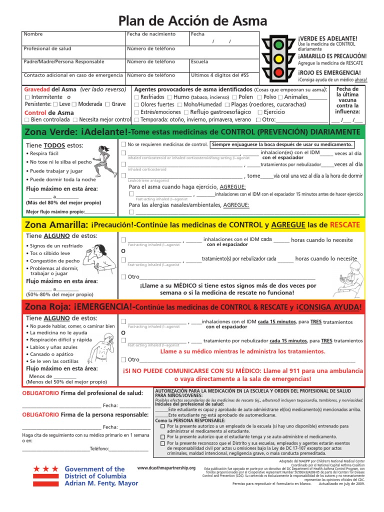 Asthma Action Plan (Spanish) Rev 7 Asma Especialidades médicas